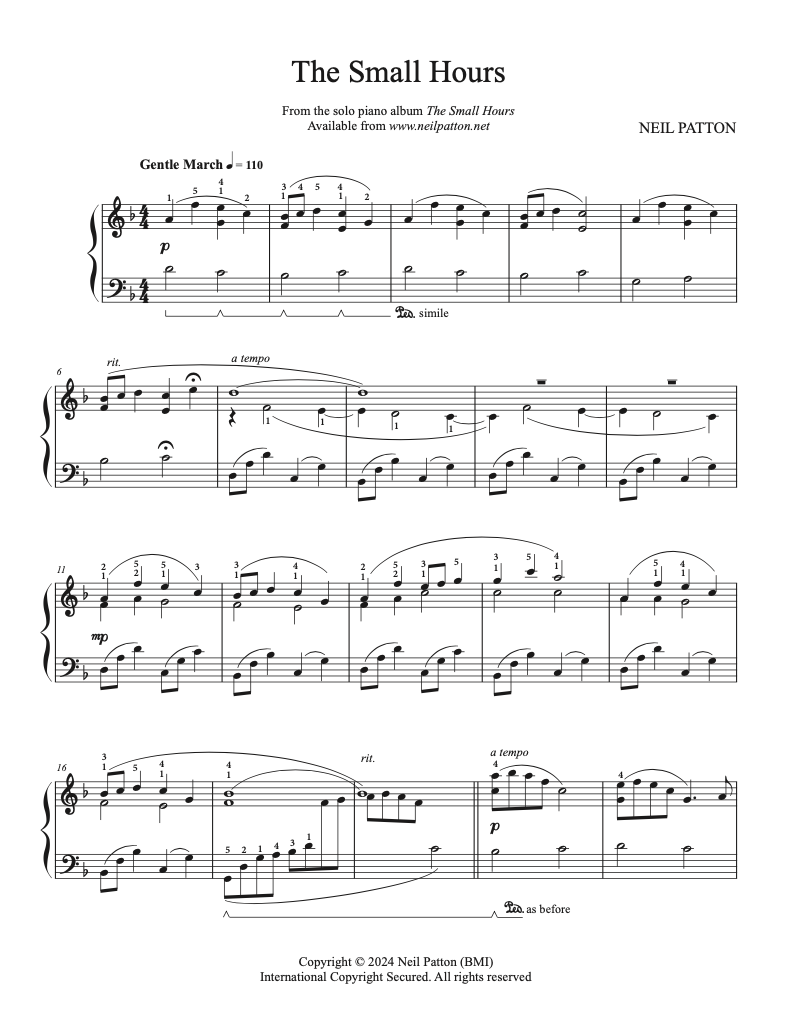 Complete transcription of The Small Hours from Neil Patton's The Small Hours album in PDF format.