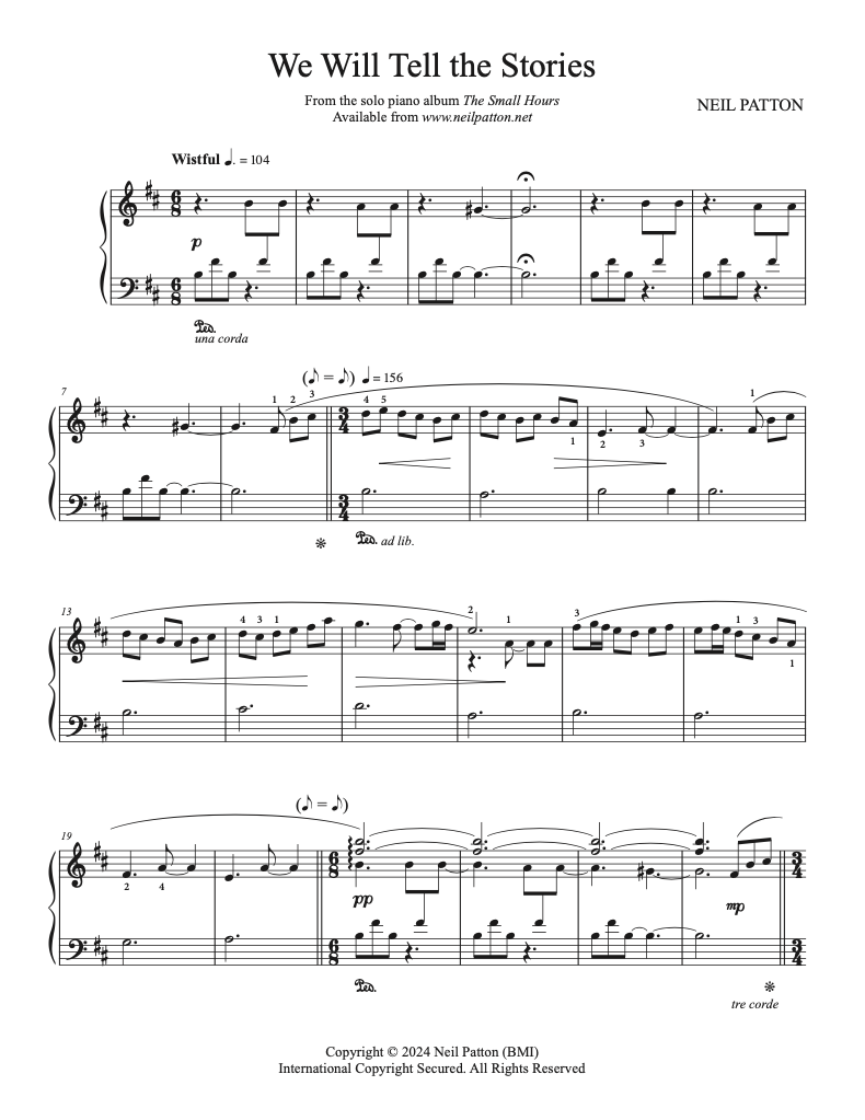 Complete transcription of We Will Tell the Stories from Neil Patton's The Small Hours album in PDF format.